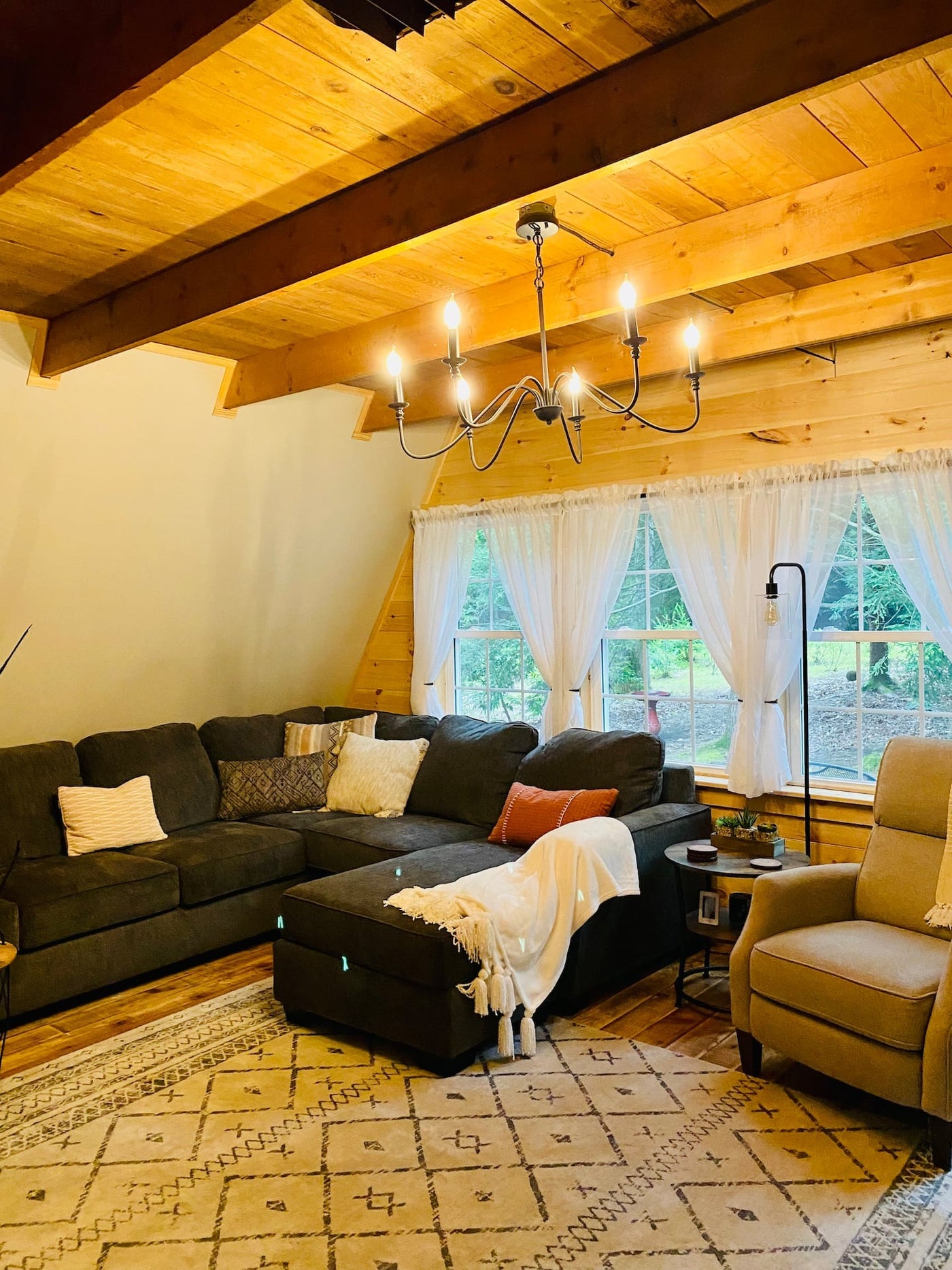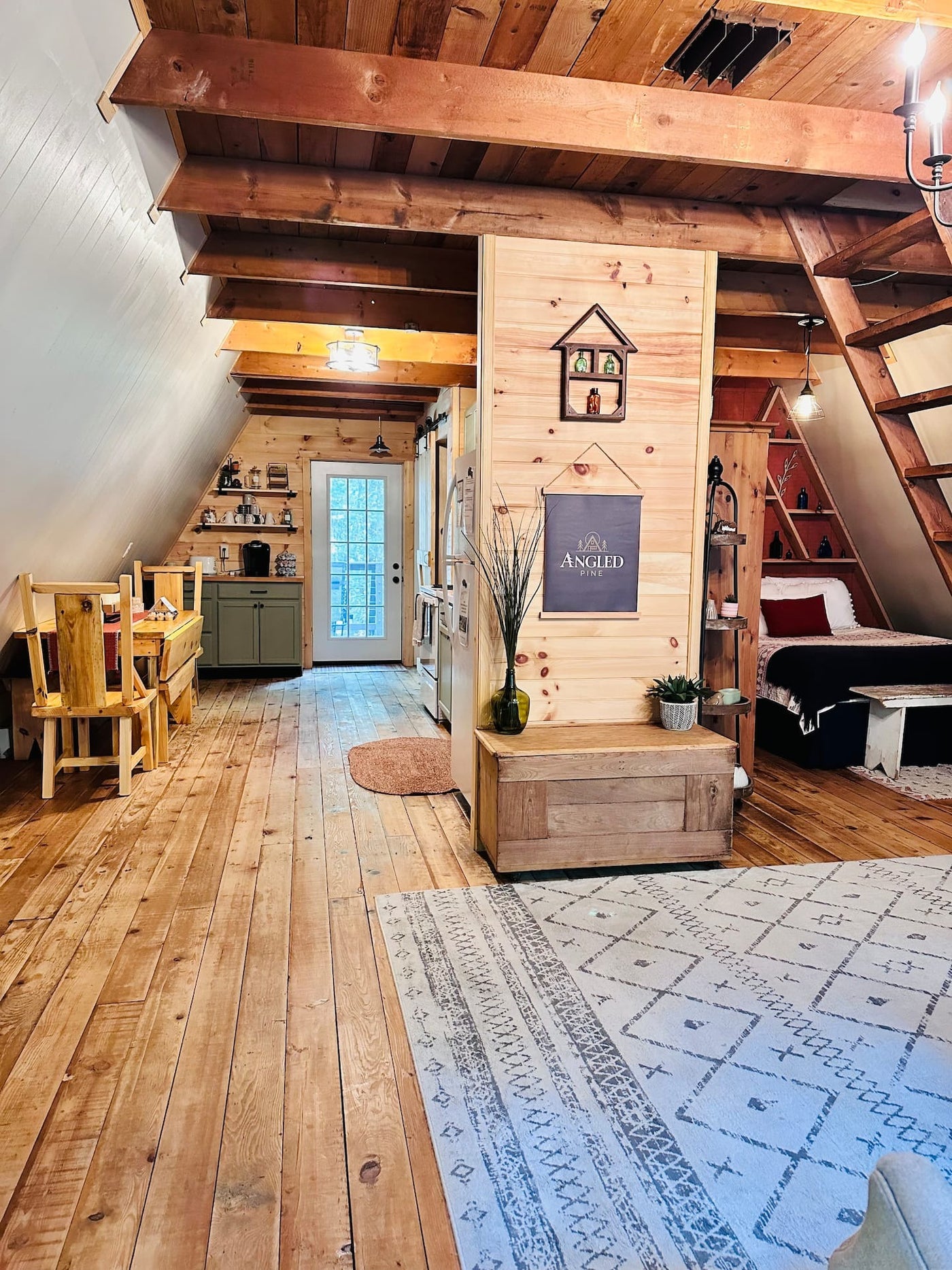 Angled Pine A-Frame Cabin