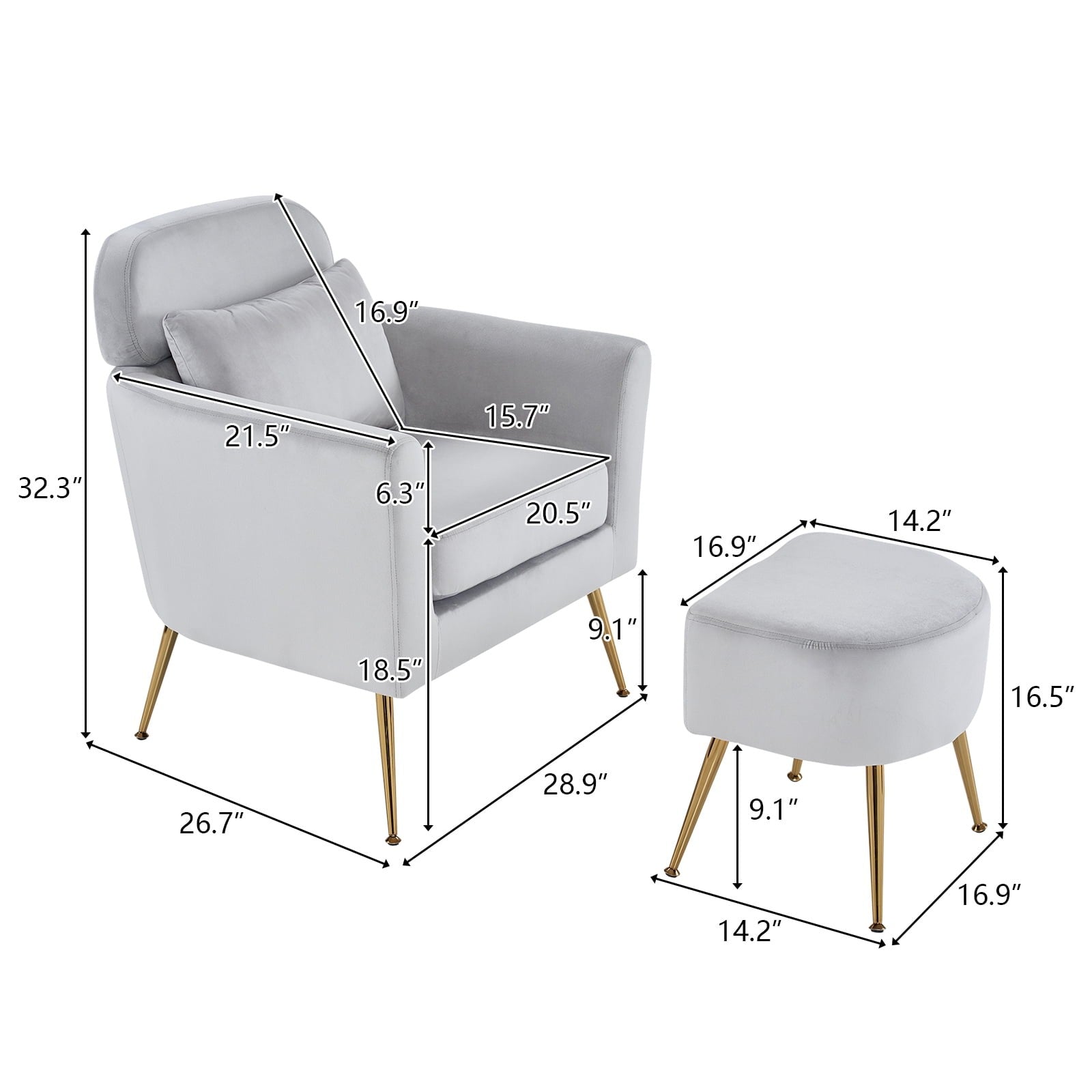 Mid Century Comfy Accent Chairs with Ottoman
